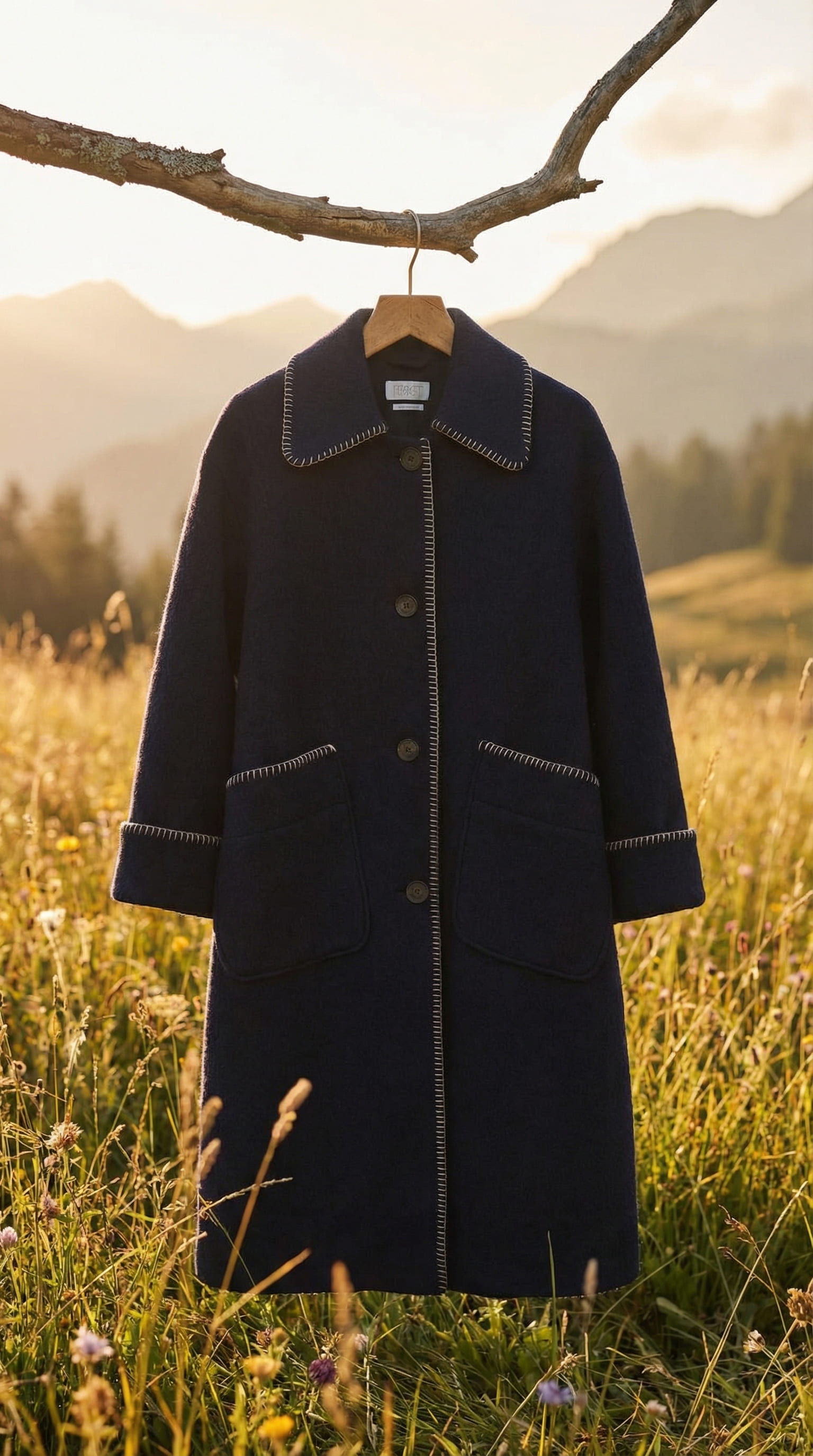 Wool from sheep that grazed on the same hills. The coat carries a material history before it carries a person.